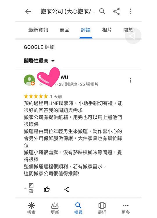 客戶回饋 : Google評論