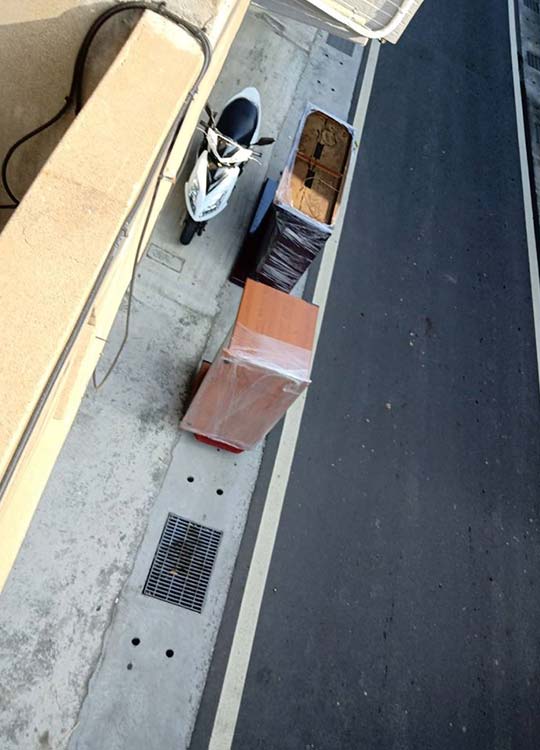 但是這次服務的住宅,因為樓梯間的狹窄無法搬運桌櫃上樓,於是選擇了吊車服務,利用陽台吊掛大型家具進屋,在還沒有電線地下化的街道,相對的也提高了高樓層吊車吊掛的難度呢!