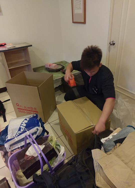 在來不及事先規劃打包流程的狀況下,師傅們也是很有經驗的,以區域分類打包裝箱