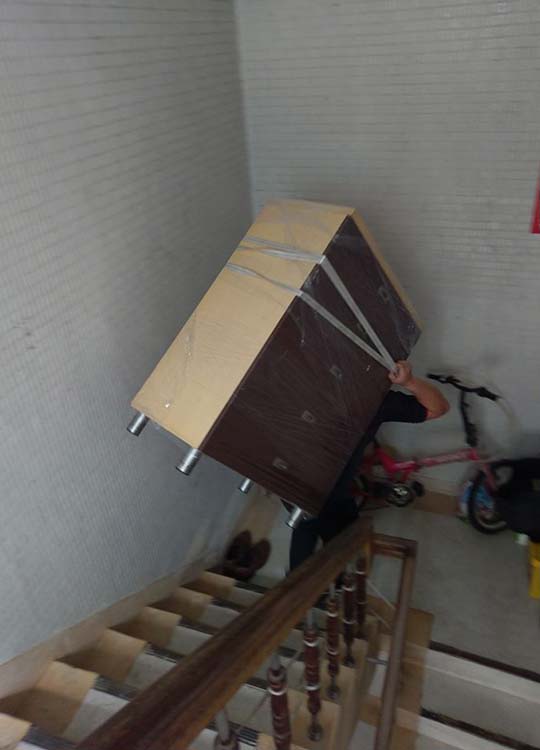 不得已,師傅們只好分次搬運,一次搬一層樓,分兩日打包裝箱、搬運,總共搬兩層