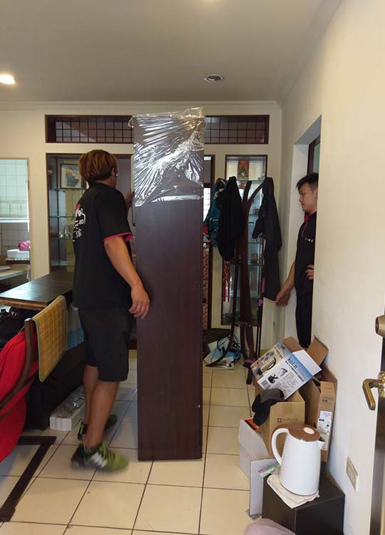 狹長型的高櫃於梯間搬運的困難度較高,除了搬運角度的問題,梯間的寬敞度也決定了搬運的困難度,