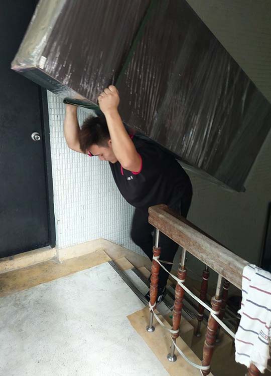 慶幸的是,此次搬運的樓梯間不是狹窄型